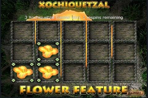 The Xochiquetzal feature is won only during the normal free games when 4 or more flower symbols show anywhere on screen. The normal free games will pause and the Flower Spins will begin.