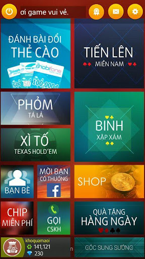 Đến với Bài 99 để trải nghiệm những game bài quen thuộc như Tiến lên miền Nam, Tá lả,hay những game bài đang hot với giới trẻ như Binh, Poker.
