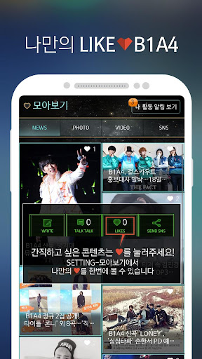: 내가 좋아하는 뉴스, 사진, 영상등을 골라 언제든 소장이 가능합니다. 그리고 바로 락스크린으로 설정을 하여 밋밋한 잠금화면 대신에 B1A4 기사를 만날 수 있습니다.