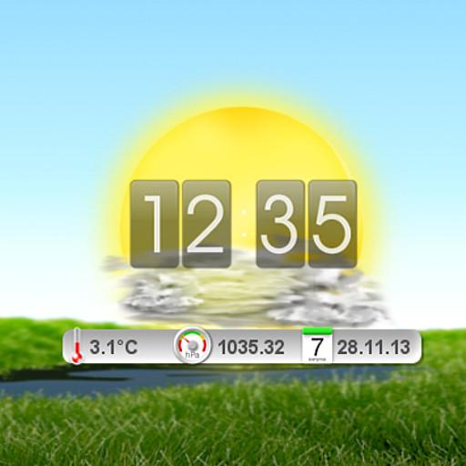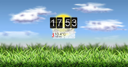 The application adds a BIG Weather and flip clock widget. It displays the current time and up to date weather information with the pressure in your current location.