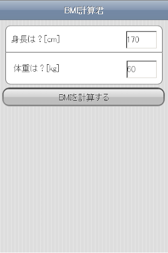算出したBMIと平均的なBMI((18.6~24.9)を比べて自分の健康状態に対してアドバイスが表示されます。