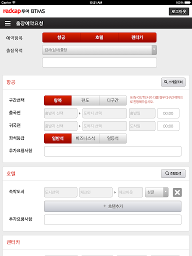 주요기능 - 항공/호텔/렌터카 예약, 출장지정보 제공