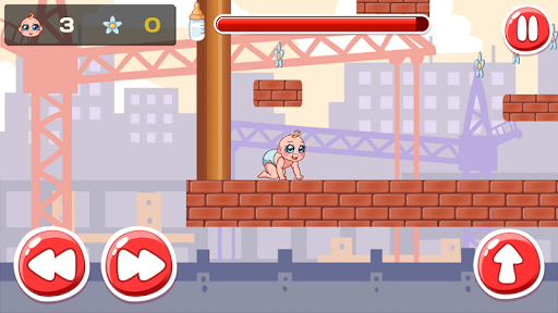HOW TO PLAY: Move your baby character to the left or to the right, using arrows on the left side. Use the arrow on the right side to jump. Collect stars and bottles with milk, avoid enemies and reach the end of the level!