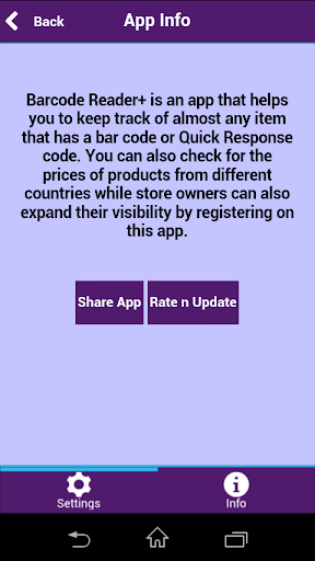 This application scans Quick Response codes and barcodes. It also reveals information about the country where the product/code was manufactured. Any other information like urls,price,description, addresses can also be scanned by this app.