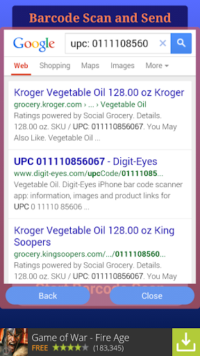 You can also scan a barcode and click the "Lookup" button and it will bring up Google with search results for that barcode.