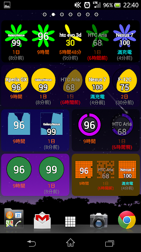 好みのデザインのウィジットでバッテリー残量をいつでも確認できます。