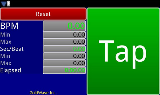 Use Beats/Minute to find the beats per minute (BPM) from taps on the touchscreen. Portrait orientation shows the average, minimum and maximum beats. Landscape orientation shows beats plus the average, minimum and maximum time between beats, as well as the total elapsed time and count. Useful for finding the tempo of a song, your heart rate, average time between events, or as a simple counter or timer.