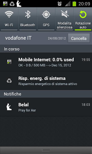 * Prayer time alerts (Fajr, Duhr, Asr, Maghrib & Isha) with Athan