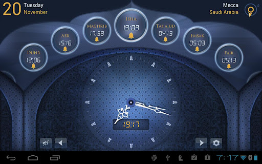* Special prayer-related alerts (Tahajud, Al Gouwda and Emsak) with recitation of relevant verses from the Holy Quran