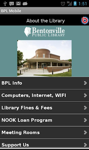 Access Bentonville Public Library from your mobile device with the BPL Mobile app. Search for books, DVDs, audiobooks, CDs and more. Review your account, place holds or renew items. Check out our latest reading lists, review the events calendar or contact us. Downloading Overdrive eBooks and audiobooks just got easier too. With BPL Mobile, your community library is available anytime, anywhere.