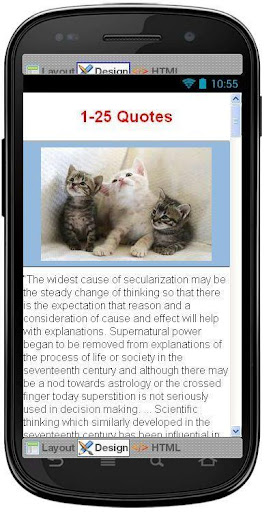 We hope you all like these superb android quotes application. Please Feel free to email us about any comments or suggestions and “Rate it 5” for our application to be improved. Developer Note : In case you face any problems do send us an email with information about your phone model, and the exact problem, and we'll try to fix it immediately.
