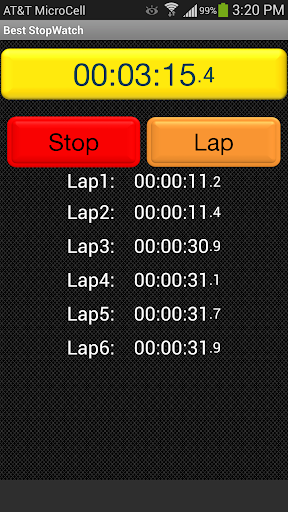 Stopwatch and Lap Timer that is simple to use and reliable. Contains easy to read buttons and numbers.