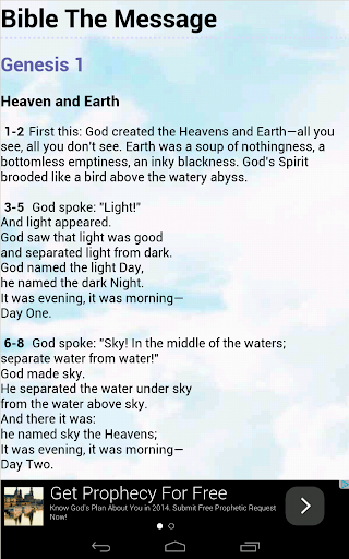This Bible is titled as "The Message" Version and includes big fonts for easy reading: Font size will accomodate to always stay big in any screen from small smartphones to big tablets.