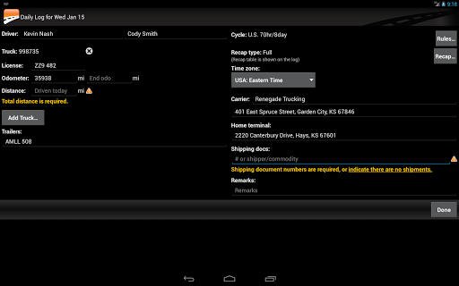 Excellent app!! Far better than paper logs and several steps above Qualcomm's now p.i.t.a. electronic logs.
