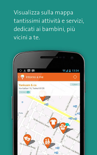 - rilevando la posizione del cellulare, Bimbilandia visualizza, sulla mappa della città, tantissimi indirizzi/attività/servizi dedicati ai bambini più vicini alla zona in cui ti trovi.