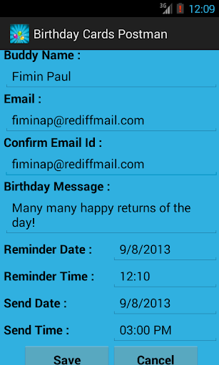 You need to do only one thing. Just schedule the date and message. You can even schedule a message for date that comes only after two years. You can schedule customized message with a card, as attachment, for multiple persons. It means, take notes of the birthdays of your buddies, schedule customized birthday message, save the schedule, and forget about the birthdays! Birthday cards postman will deliver greeting on correct date and the app will remind you the day date.