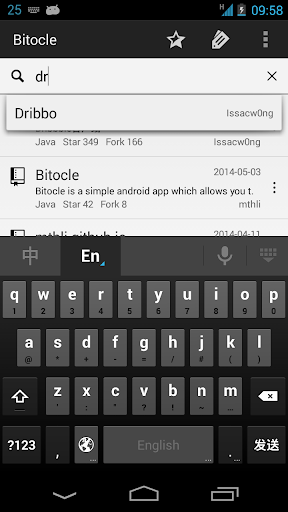 Bitocle是一款简易的用来查看自己托管在GitHub上的代码的安卓应用。