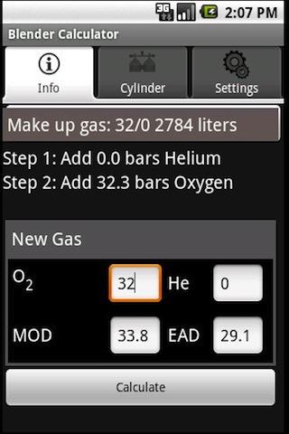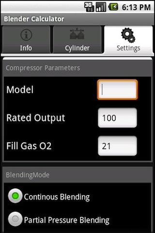 Invaluable gas blending tool for calculating either partial pressure or continuous flow blending parameters.