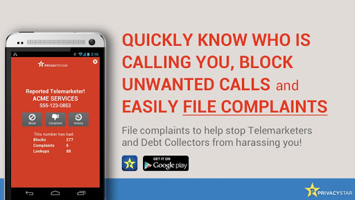 PrivacyStar is the only service that identifies callers in real time, automatically stops thousands of scammers, blocks unwanted calls and texts and allows users to report abusive calls and texts directly to federal agencies. This version now offers an industry-first feature that automatically blocks calls and texts for free from thousands of identified scammers in real time for PrivacyStar Android users. In addition, the PrivacyStar CallCenter now alerts users when a telemarketer or debt collector is calling and lets users block the caller and quickly file a complaint.
