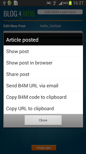 Blog4Mob will give you a quick way to publish photos, text and other multimedia content, and will return a URL that you can send your friends or share on your favorite social networks.