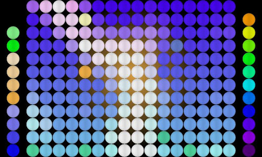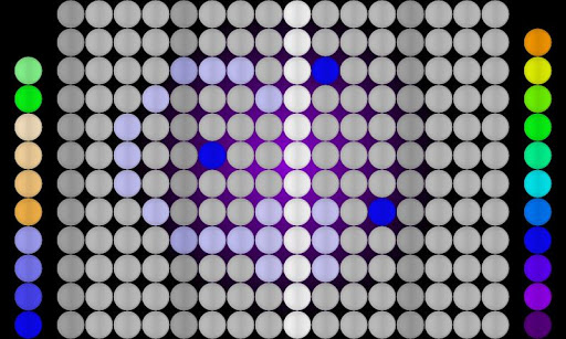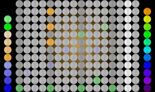 The right bar is used to select among all the options, while the left bar is used to control the current option. The central board is used to compose melodies and rhythms and to play live. Each sound matches to a layer and has dedicated parameters (volume, pitch, reverb, delay and tremolo).