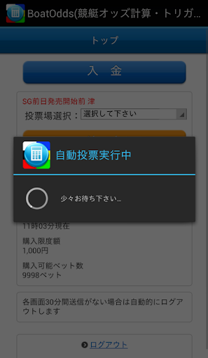 ・各レースの計算ページから、選択した舟券を自動投票(舟券、金額の自動入力)できます。