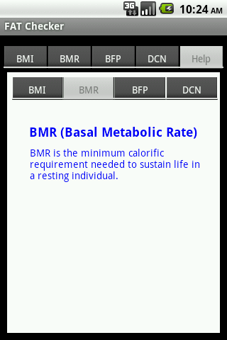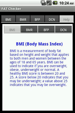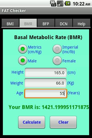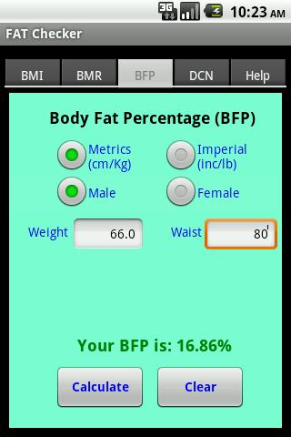 Check and keep your Body Fat under control. Calculate your Body Mass Index (BMI) your Basal Metabolic Rate (BMR) your daily calorie needs and your Body Fat Percentage.