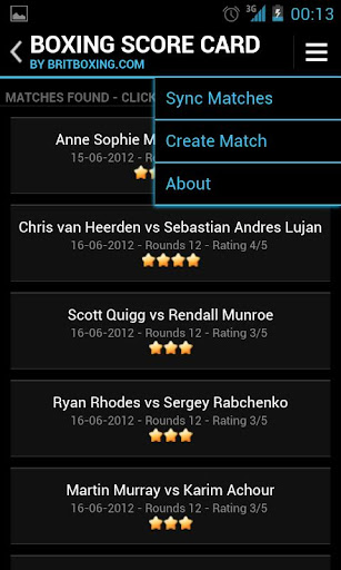 There is now a "find match" option which will download the latest matches from around the boxing world without, pick the match and start scoring straight away