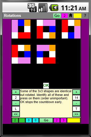 There are ten sets of exercises, with up to 5 exercises in each set (you choose). Each set of exercises has five levels of difficulty, associated with which are different countdown times.