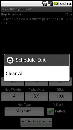 Calculates hop bitterness for your homebrew. Ability to add hop schedules to a table and automatically see your total IBUs per batch. Use for both whole leaf/plug and pellet hops.