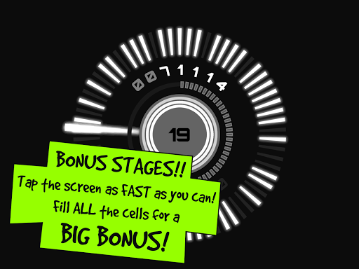 A level is 3 stages of the same colour and game mode. If you complete the level perfectly, you get a quick-fire bonus stage. Hit as many cells as you can before the timer runs out. Anyone who can get them all gets a BIG BONUS!!