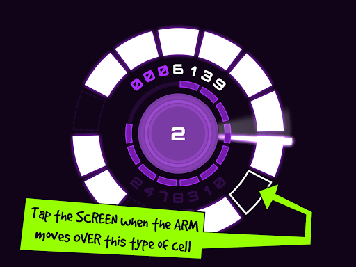 Tap anywhere on the screen when the sweep arm is over the highlighted cell in the Loop. Correctly timing your tap fills the cell.