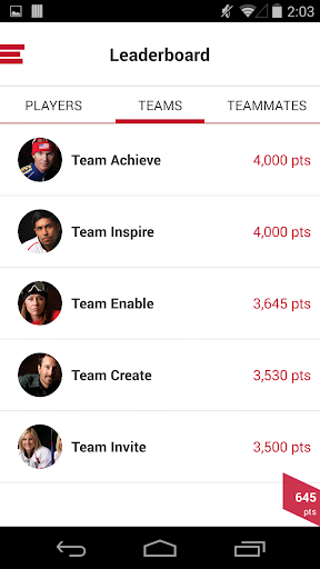 • Access to leader boards to see which players and teams are in the lead