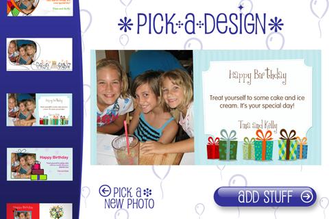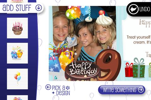 Use photos from your camera, your photo album, or even your Facebook account to create an instant Birthday card to show that you care about those important people in your life.