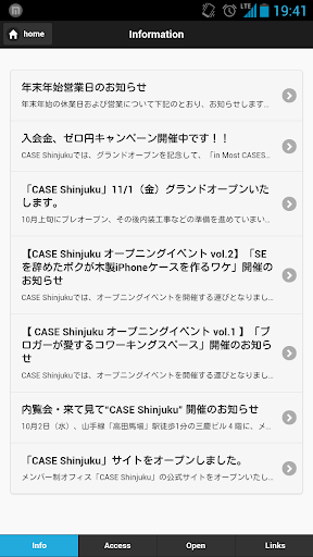 コワーキングスペースCASE Shinjuku(ケイスシンジュク)へのアクセスや新着情報をお知らせするアプリです。