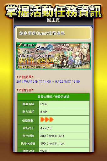 提供每次改版更新速報、活動快訊、任務資訊、免費派送情報等等,讓喜歡本遊戲的您能隨時掌握最新動態。