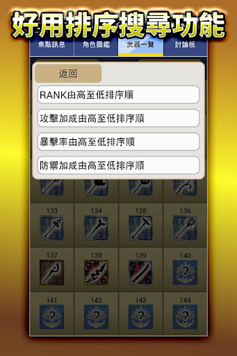 武器資訊完整收錄並可離線閱讀,好用排序功能方便您找到您想看的武器資訊。