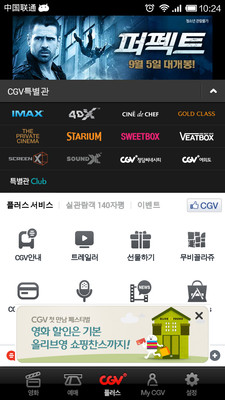 CGV为用户提供一个令人印象深刻的电影Cultureplex CJ CGV应用,该应用基于预订服务,提供最新的电影预告片,以及优惠卡体验等各种信息服务!