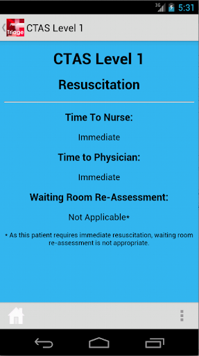 This is the official application of the Canadian Triage and Acuity Scale (CTAS) as authored by the Canadian Association of Emergency Physicians (CAEP), the National Emergency Nurses’ Affiliation and other partner organizations. This application walks the user through patient complaints in assisting clinicians to assign acuity levels using the complaint oriented triage lists and modifiers. All lists and modifier definitions and data are within the application and therefore no data connection is required. The application includes instructions for Emergency Department and Pre-Hospital use.