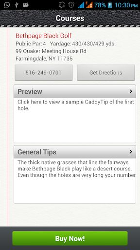 CaddyTips is currently offering the app for free; this includes the General Course Tips and the tips for the first hole. To obtain the rest of the tips for Holes 2-18, you must make an in-app purchase for $14.99.