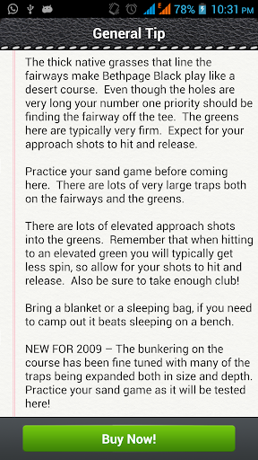 - Download the remaining course tips (tips on each shot on every hole) with an in-app purchase of $14.99.