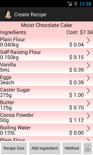 Change the size and shape of the cake and see how much it will cost and the amount of ingredients you will need. Update the cost of ingredients as they change.