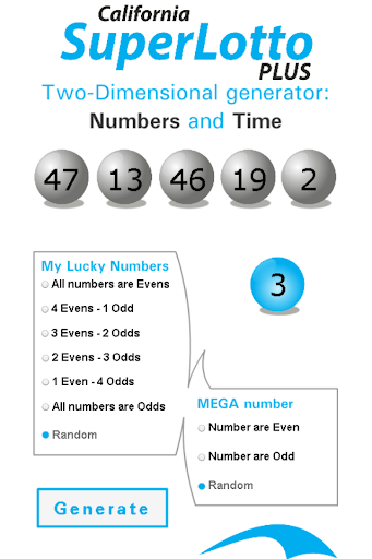 This app helps players to choose numbers for California SuperLotto Plus draws.