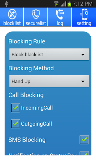 1. Block list– blocks all numbers in you block list. Add number to the block list either from contacts or enter manually.