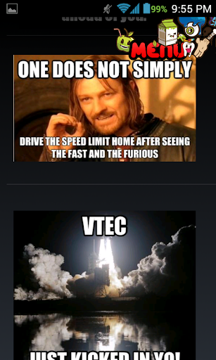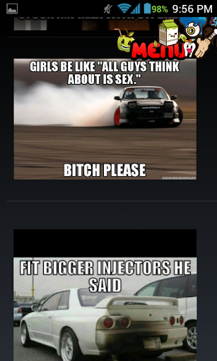 Car memes is on Android ! Why ? Because race car ! Just kidding, because there are tons of petrol heads out there who would love to have dedicated car meme app for them. So whever you drive muscle or import, love turbo, honda and it's vtec, or you rather prefer racing in bmw. Whatever is the case, if you love cars and want to laught at memes about cars grab this app !