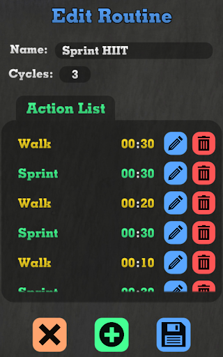Interval training is the most effective way to burn fat and maximize results. You can incorporate interval training into any workout, cycling, elliptical, treadmill, running, weight lifting, Tabata, whatever exercises you do. The Cardio Training Timer allows you to create groups of workout and rest timers customized specifically for you and the way you want to train. You can set specific colors for each timer and set the number of rounds/cycles for each routine in your workout. And you can use it while listening to music on your phone.