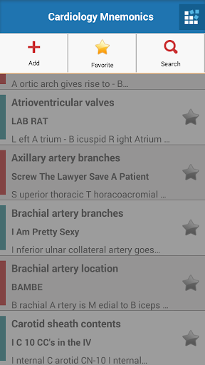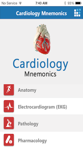 Cardiology Mnemonics provides you with clever acronyms, stories, and memory tricks, on your fingertips. Subjects range from Anatomy, Pathology, Pharmacology, Electrocardiogram (EKG), and much more.