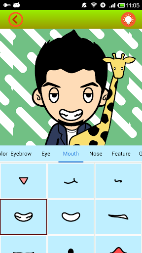 - Mouth and Nose: presents various cartoon mouth expressions, sharp dentures (bites), mustache, beard, animal noses like the one of a monkey and pigs etc.