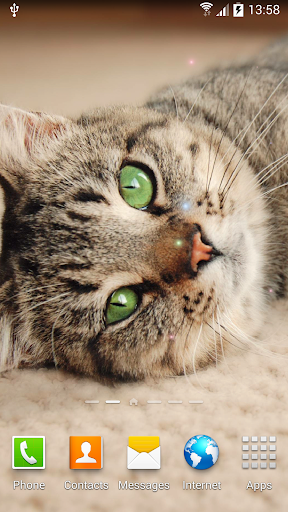 How to set this cat wallpaper on the screen of your phone: Home → Applications → Settings → Display → Wallpapers → Home screen wallpaper → Live wallpapers → Cat Live Wallpaper