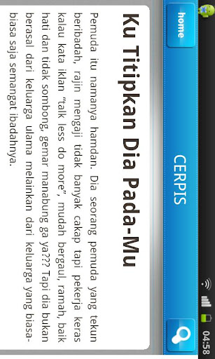 Cerpen Islami (Cerpis). Kumpulan cerita pendek, novel pendek, kisah para sahabat nabi dan kisah nyata yang bernuansa Islami. Cerita nyata dan cerita fiksi yang menarik untuk dibaca karena banyak mengajarkan hikmah dan pelajaran hidup.